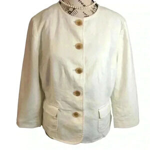 Kasper and Co. Ladies 14 Ivory Linen Blend Lined Jacket 3/4 sleeves