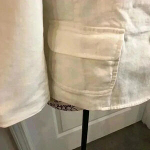Great used condition. Made of Linen and Rayon. Bust size is 38 and length is 22” and sleeves are 12”