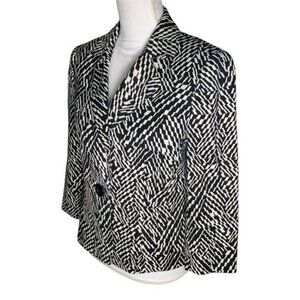 Chic Kasper black and white print blazer in a timeless, tailored silhouette. Features a single button front, notched lapel, and structured fit that flatters every shape. Perfect for workwear, interviews, or elevated everyday outfits. Pre-owned, excellent condition — polished and classic.
