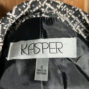 Kasper blazer career knit brown tan geometric polyester 6 FIRM on PRICE
