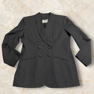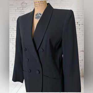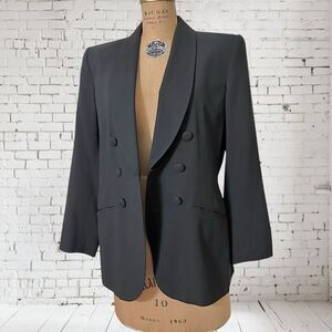 Kasper for ASL Black Crepe Double-Breasted Tuxedo Blazer Size 8