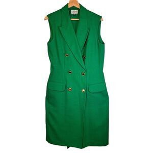 Kasper for ASL Green Sleeveless Blazer Wrap Dress Gold Buttons Size 10
