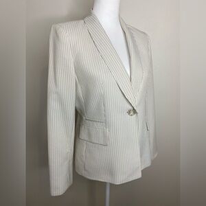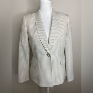 Kasper gray White Pinstripe Elegant Cream Women's Single Button Fitted Blazer 6P