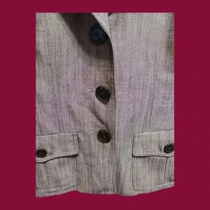 3 front button blazer,padded shoulders,2 flap pockets in great is like new smoke and pet free home.0348