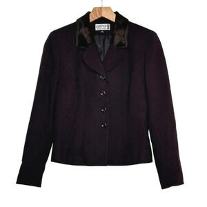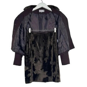 Kasper women’s 2P suit chocolate brown patterned faux fur collar blazer + skirt
