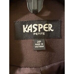 Kasper womens Short Blazer Suit Jacket size 2P 2 Petite Brown Faux Suede Trim