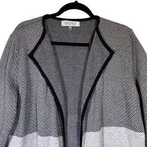 Kasper women's size XL color block duster open front cardigan sweater black grey
