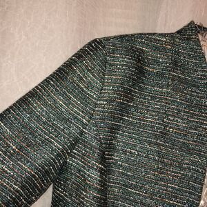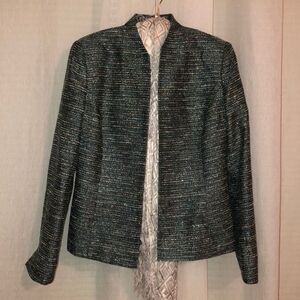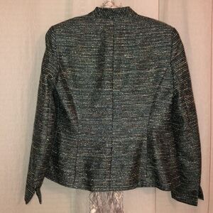 Kasper 6 Striped Elegant Evening Green White Orange Black Metallic Tweed Jacket