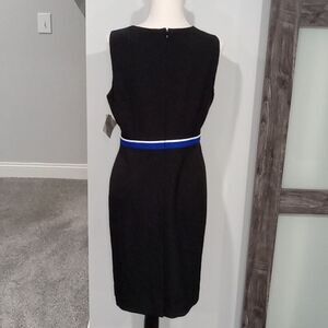 Kasper Black Sheath Midi Dress With Royal Blue & White Stripe. Size 8P NWT