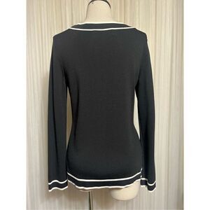 Kasper Black and White Long Sleeve Cardigan Sweater Jacket Size Small