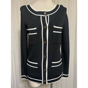 Kasper Black and White Long Sleeve Cardigan Sweater Jacket Size Small