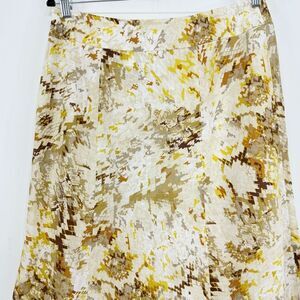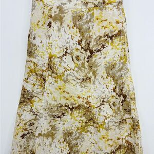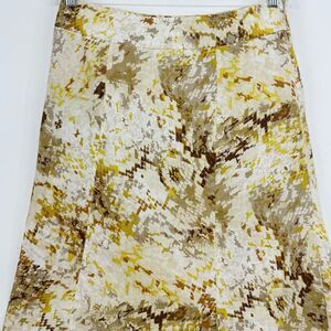Kasper Cream Brown Yellow Abstract Reptile Linen Blend A Line Midi Skirt