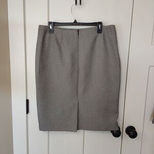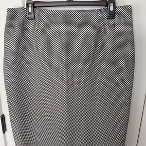 Kasper Pencil Skirt Size 12 Black and white geometric pattern Zip closure Back slit Measurements are shown