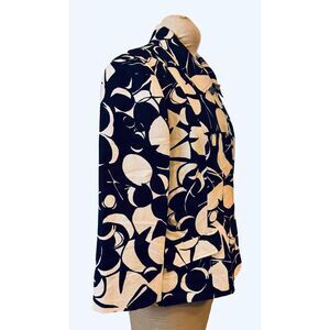 Beautiful Kasper black and white geometric patterned jacket. Linen blend, it features long sleeves and a button closure.