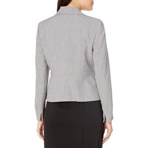Elevate your workwear wardrobe with this classic and tailored gray blazer from Kasper. Designed for a polished silhouette, this petite-size blazer features structured shoulder padding, a lined interior, and slit cuffs for a sleek finish. The two-button front closure adds a timeless touch, while the soft stretch fabric ensures comfort all day long.