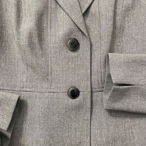 Kasper womenâs blazer, gray blazer size 4P, petite career blazer, two button blazer women, Kasper office blazer, lined gray blazer, structured workwear jacket, womenâs petite blazer gray, business casual womenâs jacket, professional work blazer, Kasper petite gray blazer, classic womenâs office blazer, blazer with shoulder pads, elegant gray womenâs blazer, Kasper formal blazer