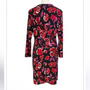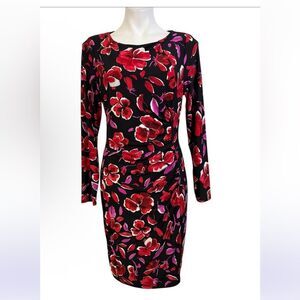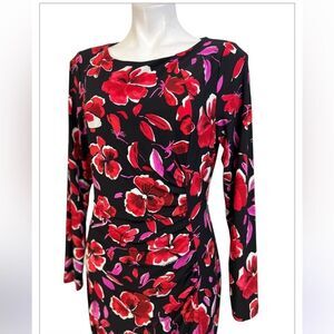 Kasper dress size 8/10 red multicolor floral 3/4 slv knee length stretch office