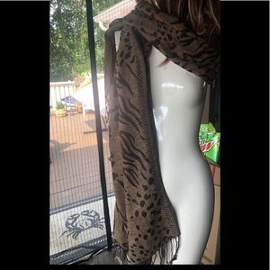 Animal print Kasper scarf can be used in a variety of ways.