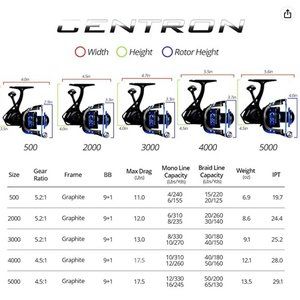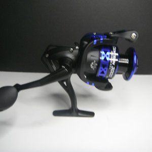 KastKing Centron 3000 Spinning Reel. Ambidextrous, Black with blue, made with materials including Aluminum, Graphite, and Metal. Centron's nine quality ball bearings and one instant stop one-way anti-reverse bearing give it ultra-smooth performance.