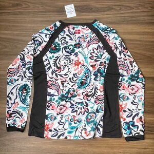 This long sleeve crewneck is UPF 30, breathable power mesh and soft 4-way stretch fabric in a contemporary fit It provides reliable sun protection, keeping your skin safe from harmful UV rays. Flattering design can be worn tucked or untucked.