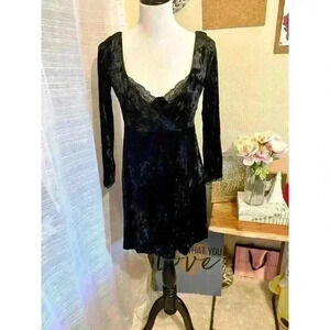 Kat Long Sleeve Faux Wrap Velvet Minidress - FREE PEOPLE