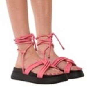 kat maconie sandals, milan flat dragonfruit pink, designer summer sandals, bold pink sandals, size 6 flat sandals, statement sandals women, boho chic pink sandals, cottagecore bright shoes, witchy summer sandals, goth glam footwear, luxury designer flats