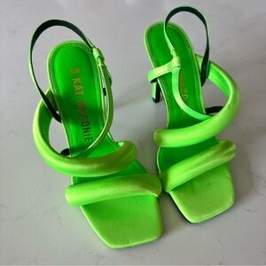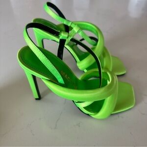 The Ravenna sandals are the Y2K inspired heel you have been wanting. This heeled sandal is cut from highlighter green faux leather with padded straps for added comfort and style.