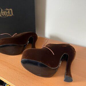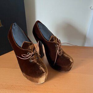 Kat Von D Luxe Vegan Shoes - Natacha I heels in beautiful golden brown snakeskin-embossed velvet. Original box. Never worn - NIB. Fits true to size. Smoke free home with pets.