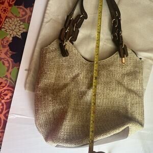 Kate & Alex Cuffaro Soft Tote Bag Tan/Brown Gold Trim 5 Compartments