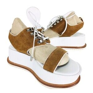 Kate Bosworth X Matisse Dawn Brown White Suede Lace-Up Platform Sandals Size 7