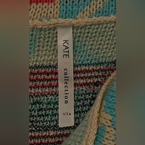 Kate Collection Knit Sweater Cardigan Women’s Tan Aztec Tribal Pattern USA Boho