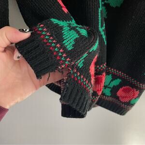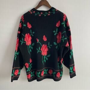Kate Collin’s | Vintage Black & Pink Red Rose Knit Pullover Sweater 80s Acrylic