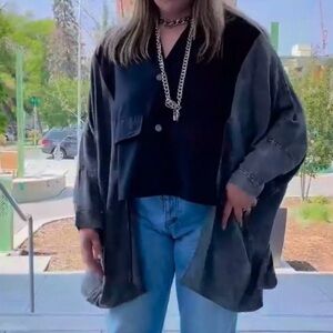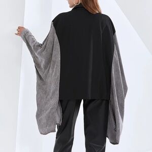 Kate Hewko Bat Wing Jacket Mixed Material One Size Black Washed Gray Streetwear