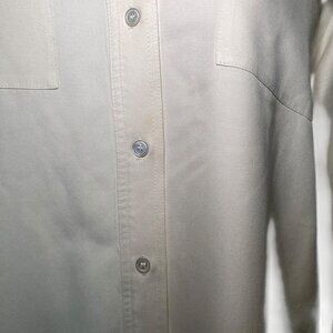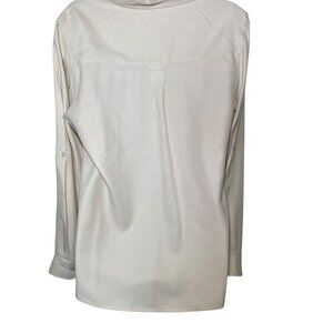 Keywords: Kate Hill blouse, silk button down, cream silk shirt, size 8 silk blouse, long sleeve work top, business casual silk shirt, neutral blouse, elegant workwear