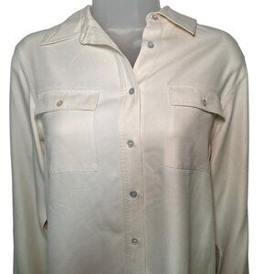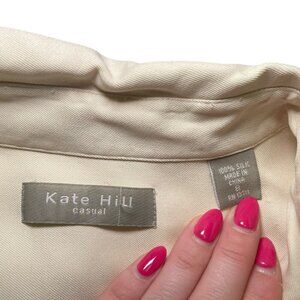 Kate Hill 100% Silk Cream Button Down Blouse Size 8