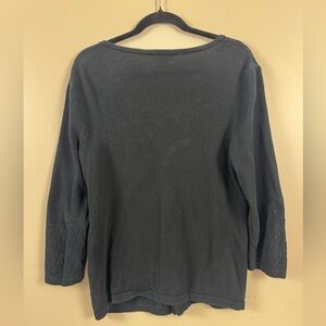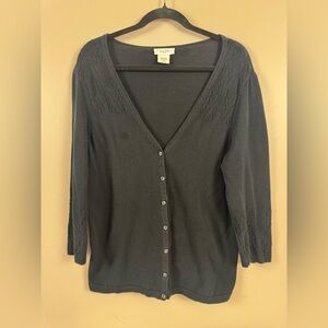 Kate Hill Black V-Neck button front Cardigan Sweater petite large