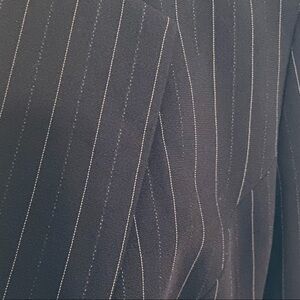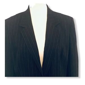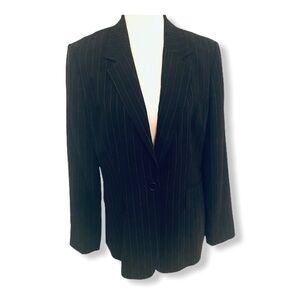 Kate Hill Black Pinstripe One Button Long Blazer Jacket Sz 10