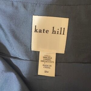 Kate Hill Blazer Jacket Blue Silk Blend 3/4 Sleeve Button Front Fully Lined 22W