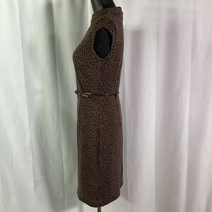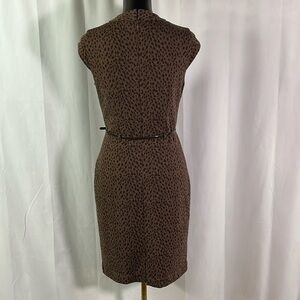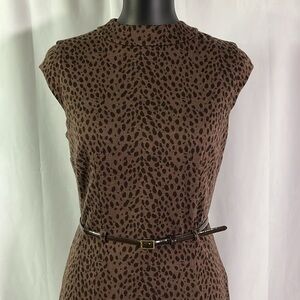 Kate Hill Brown Animal Print Belted Cap Sleeve Sheath Dress