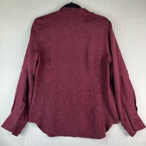 Kate Hill Button-Down Long Sleeve Silk Blouse Burgundy Vintage Embossed Medium