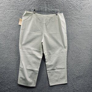 Kate Hill Capri Pants Womens 22W Green White Seersucker Stretch Casual NWT