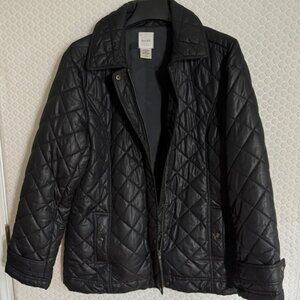 Kate Hill Casual Quilted Black Jacket -Collared, Button Front, Lined Sz. 14