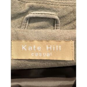 Kate Hill Casual Women's 16 Genuine Suede Leather Button Jacket Pockets Green; Newly Dry Cleaned, Very Good Condition; Approximate measurements: chest: 22 1/2" length 26 1/2" sleeve 25"