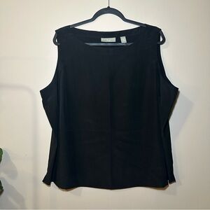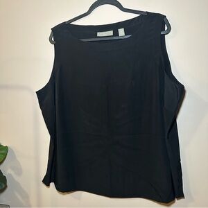 Kate Hill Classic Closet Staple Black Sleeveless Silk Elevated Basic TankTop 22W