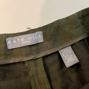 Kate Hill Dark Green Linen High Rise Relaxed Fit Trouser Pants Size 12