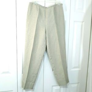 Kate Hill For Lord & Taylor Pants Striped Cream Gray Linen Blend Size 8P