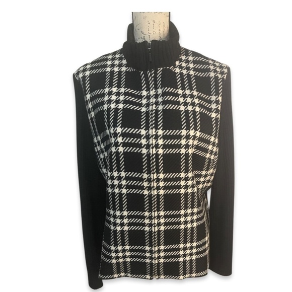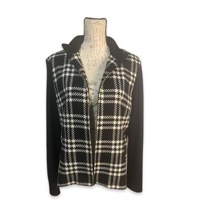 Kate Hill Houndstooth 100% Wool Full Zip Black & White Sweater Jacket