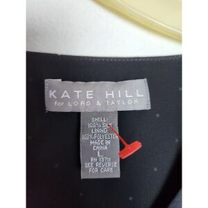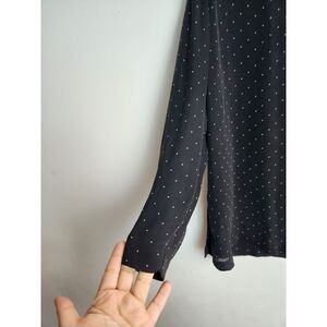 Kate Hill Lord & Taylor Black w/White Swiss Dot 100% Silk Open Blouse size Large