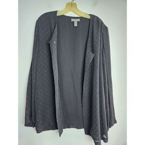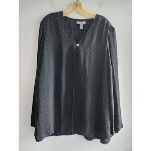 Kate Hill for Lord & Taylor Black w/White Swiss Dot 100% Silk Open Blouse size Large, with one button closure