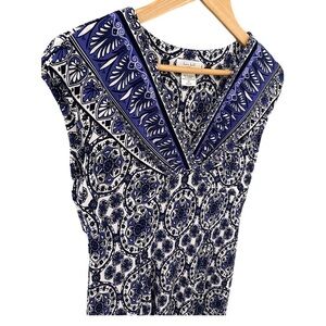 Kate Hill Navy Purple Sleeveless Paisley Print Dress Size 4P